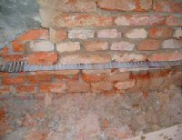 otevření zdiva. Tento faktor je velmi důležitý, neboť odpadá (jak je tomu u klasického podřezání) riziko statického porušení objektu. Jednotlivé desky na sebe navazují zámky a vytvářejí kapilárně nepropustnou nerezavějící uzávěru proti zemní vhlkosti. Odsazení zdiva (tvorba trhlin vzniklých sedáním) ve vertikálním směru nenímožné, neboť při protlačování desek se malta ve spáře zhutňuje. K poškození, nebo rozbití zdiva zpravidla nedochází i v případech, kdy cihly přes sílu zdiva neleží v jedné rovině.